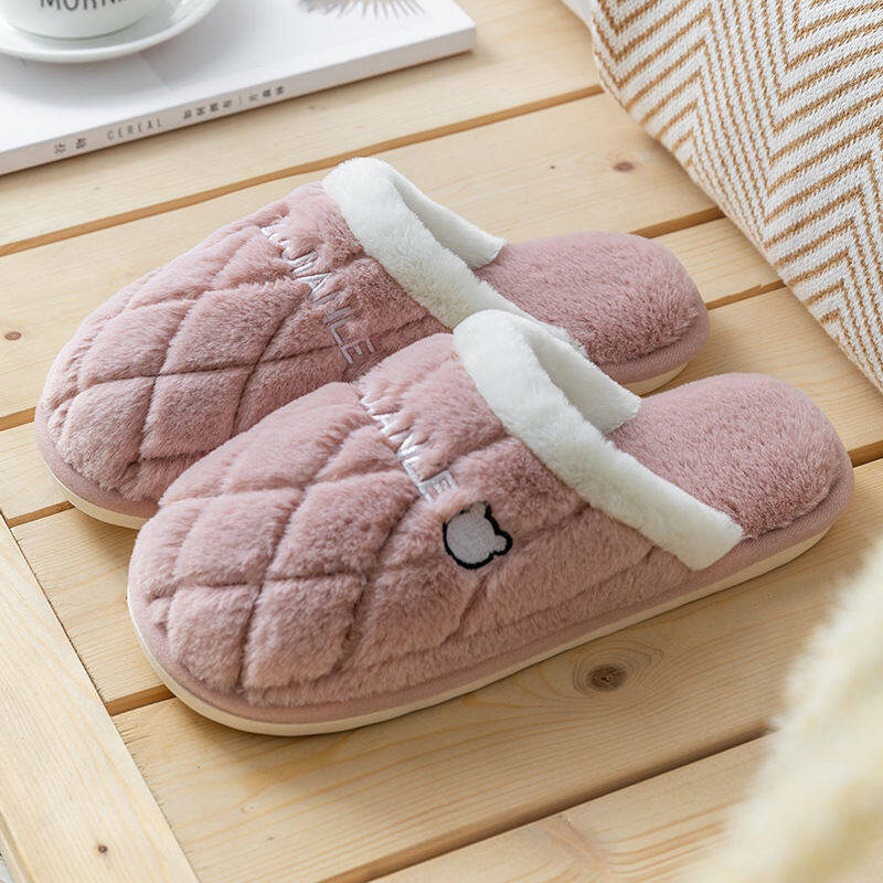 Selipar Wanita Slippers For Women Kasut Bulu Dalam Rumah Cotton Couple Winter Faux Fur Fluffy Home Slippers Non Slip Warm Bedroom Indoor Slippers Cute For Women Cute Bowknot Pattern Selipar Dalam Rumah